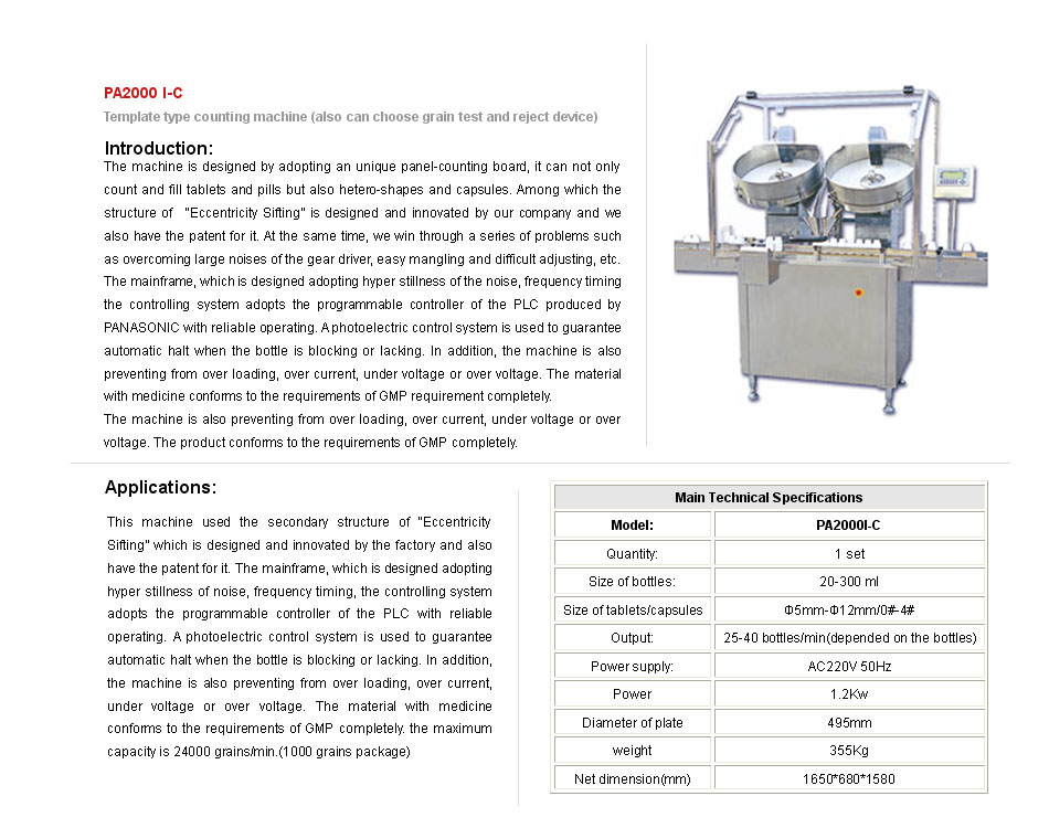 >Products> Solid medicament bottle packing > PA2000 I-C